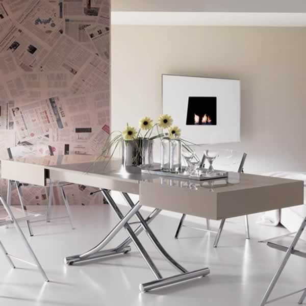 Tavolino da salotto trasformabile in tavolo da pranzo modello BOX CRISTALLO, cm 120×75 chiuso – cm 220×75 aperto. Allungabile a misura intermedia. Altezza regolabile al millimetro da 25 a 84 cm.