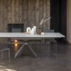 Tavolo allungabile Sintesi: design moderno e funzionalità si uniscono in un elemento d’arredo versatile e raffinato. La gamba centrale è realizzata in metallo verniciato, disponibile in diversi colori, offrendo stabilità e un tocco contemporaneo all’ambiente.