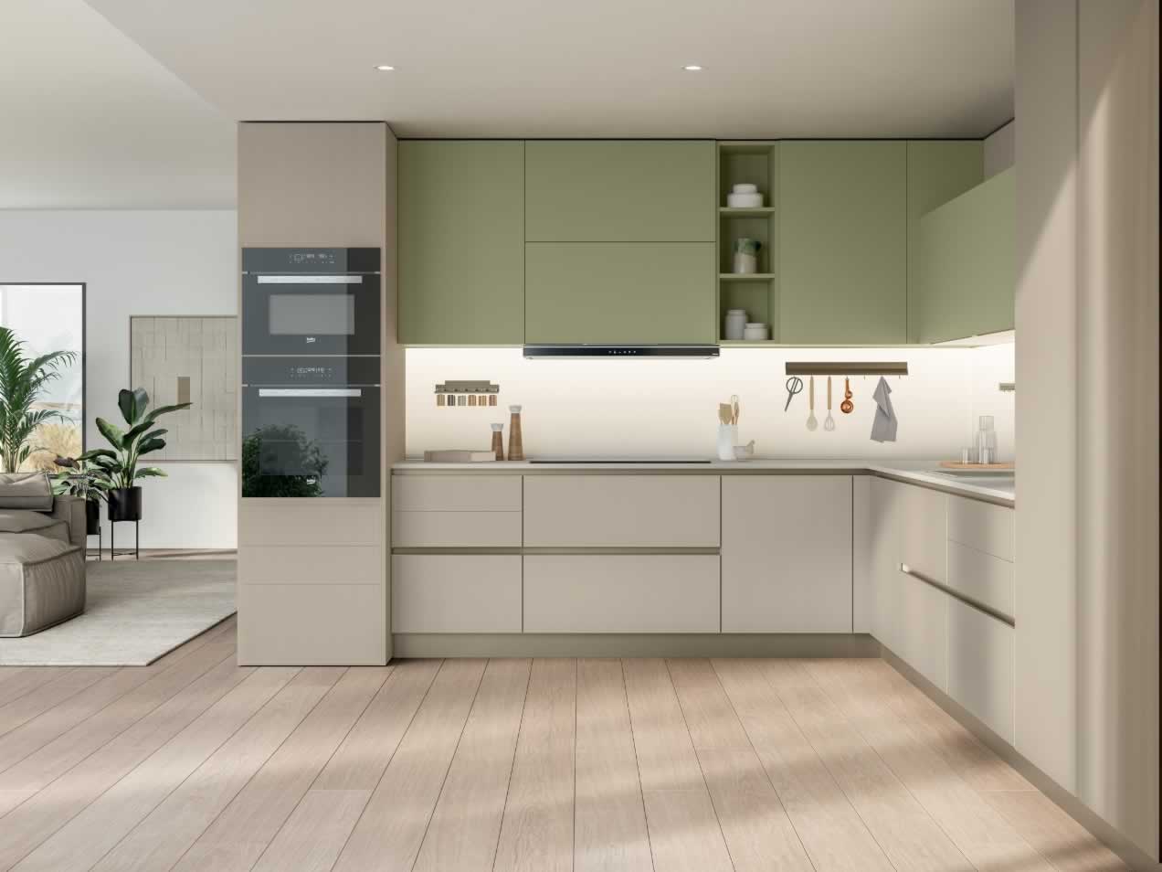 Veneta Cucine Start Time: partire con il piede giusto, conferendo allo spazio cucina il sapore giovane di un design dalle linee pure, vestito di colori cool e finiture legno in trend con le tendenze che guardano alla naturalità .